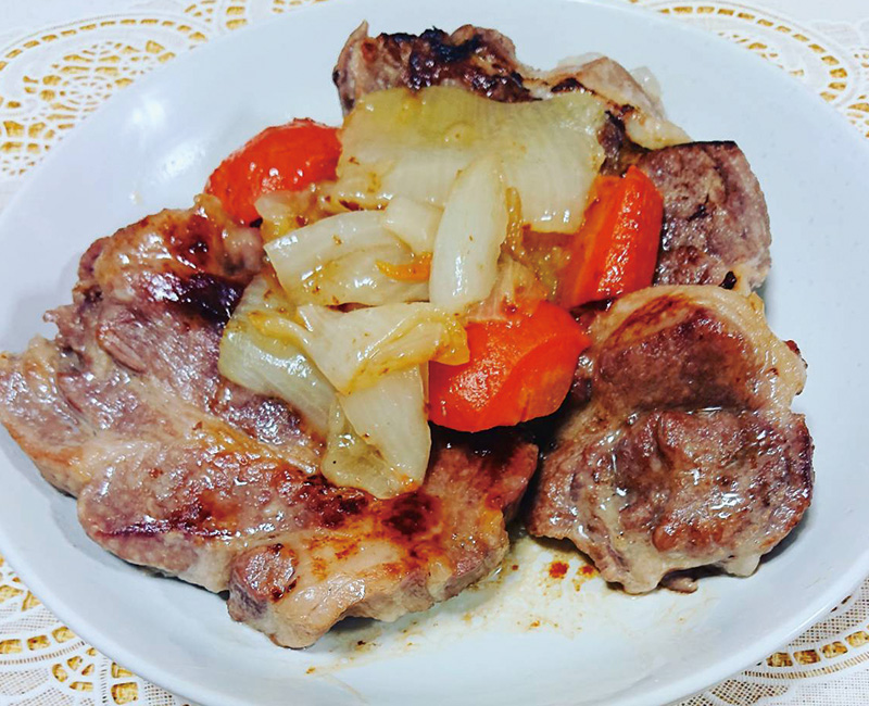 豚肩ロースのソテー玉ねぎ人参のせ